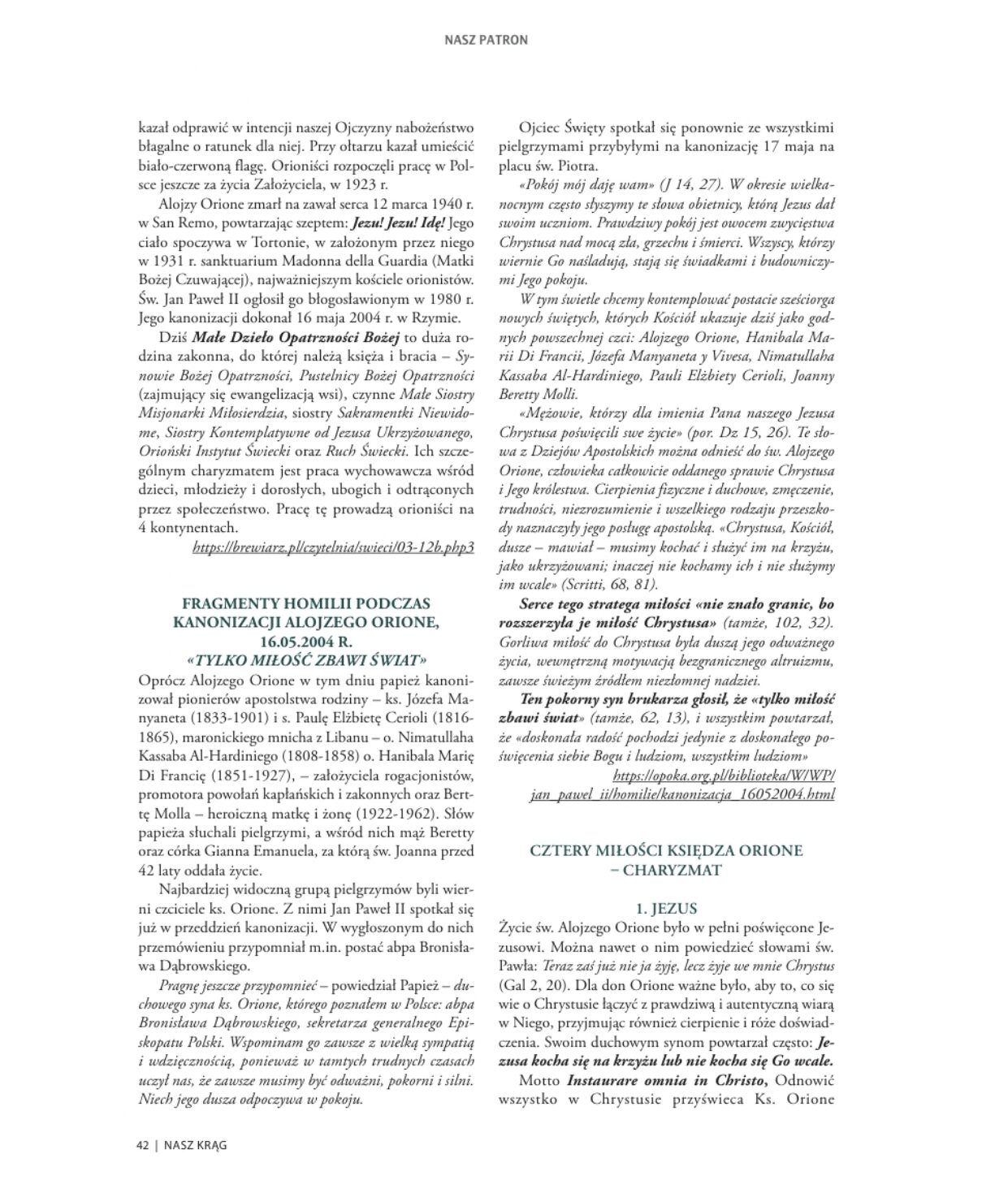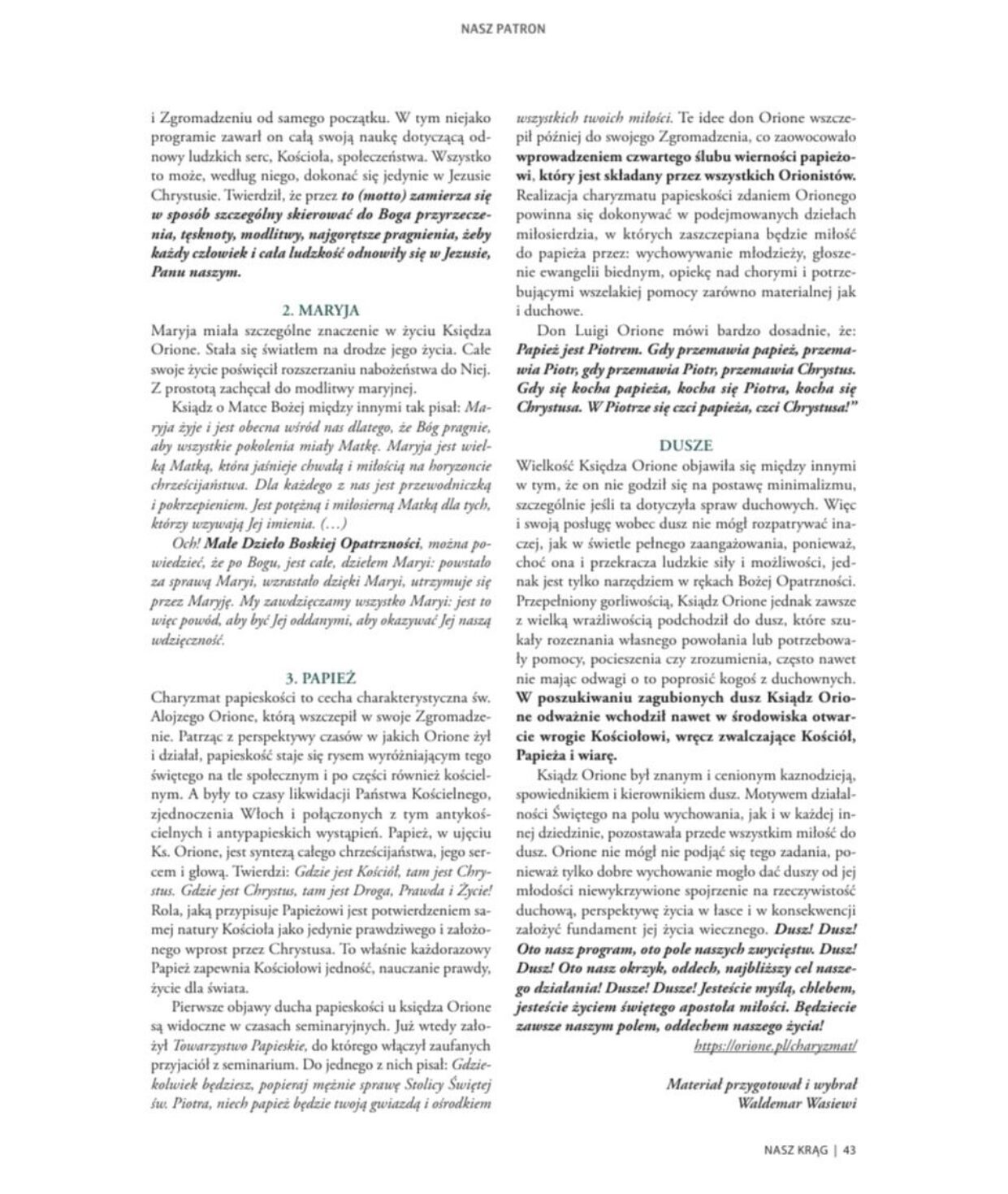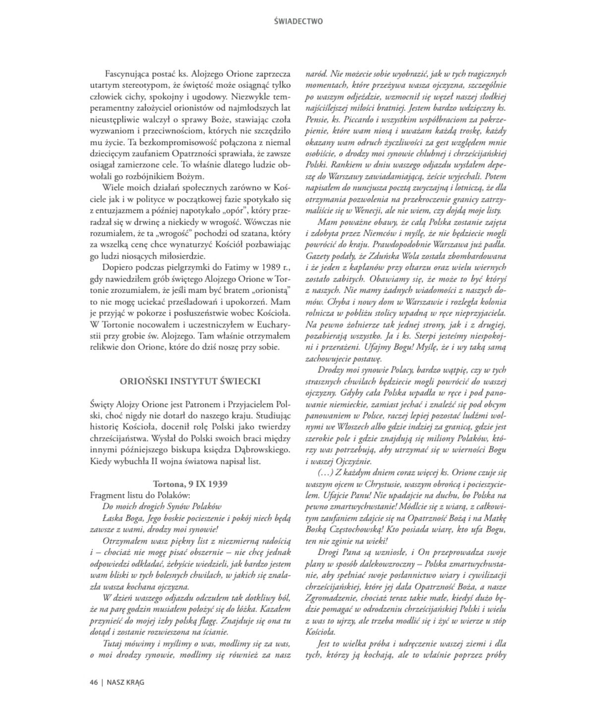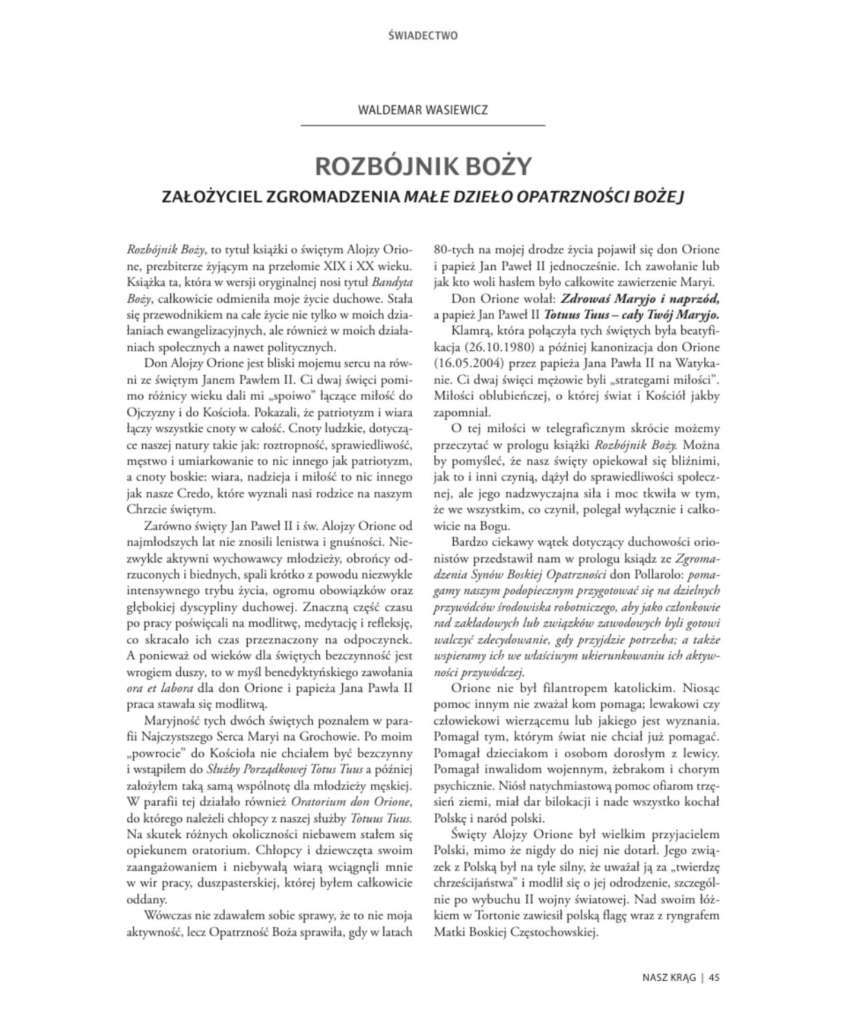 W lutowym wydaniu pisma „Nasz krąg” znalazło się świadectwo pana Waldemara Wasiewicza, organizatora tego spotkania. „Nasz Krąg” to parafialne czasopismo wydawane w stołecznej parafii św. Zygmunta na Bielanach.