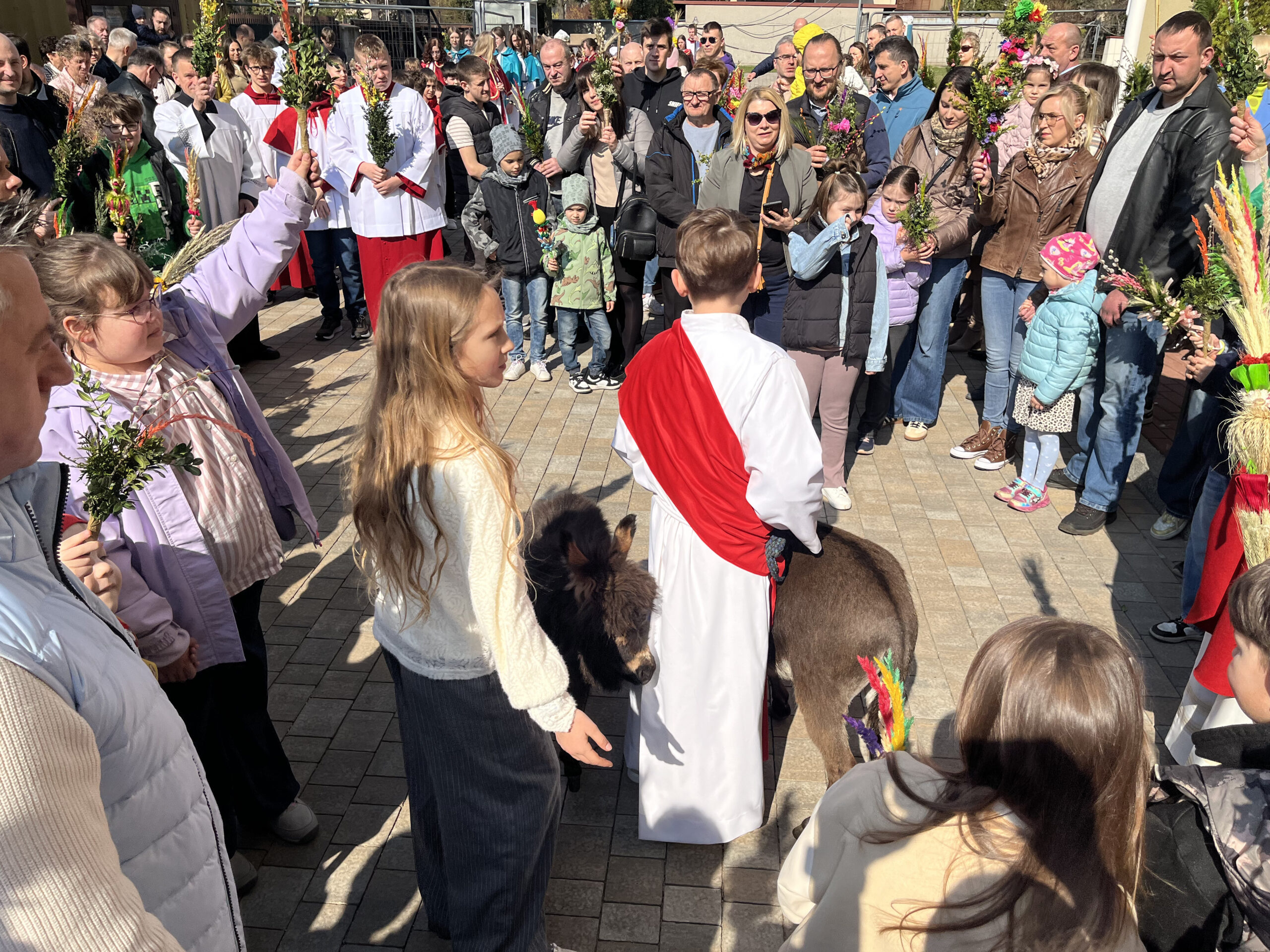 W wielu parafiach prowadzonych przez Księży Orionistów dzisiejsza Niedziela Palmowa była wyjątkowym czasem wspólnotowej modlitwy i radosnego świętowania. Tradycyjnie zgromadzeni wierni mogli uczestniczyć w uroczystych procesjach z palmami, którym w wielu miejscach towarzyszył osiołek. Taki element jeszcze mocniej i namacalnie pozwalał przeżywać pamiątkę wjazdu Pana Jezusa do Jerozolimy. Towarzyszący wiernym śpiew i wspólna modlitwa w drodze doskonale podkreślały radosny, ale jednocześnie pełen zadumy charakter tego dnia.